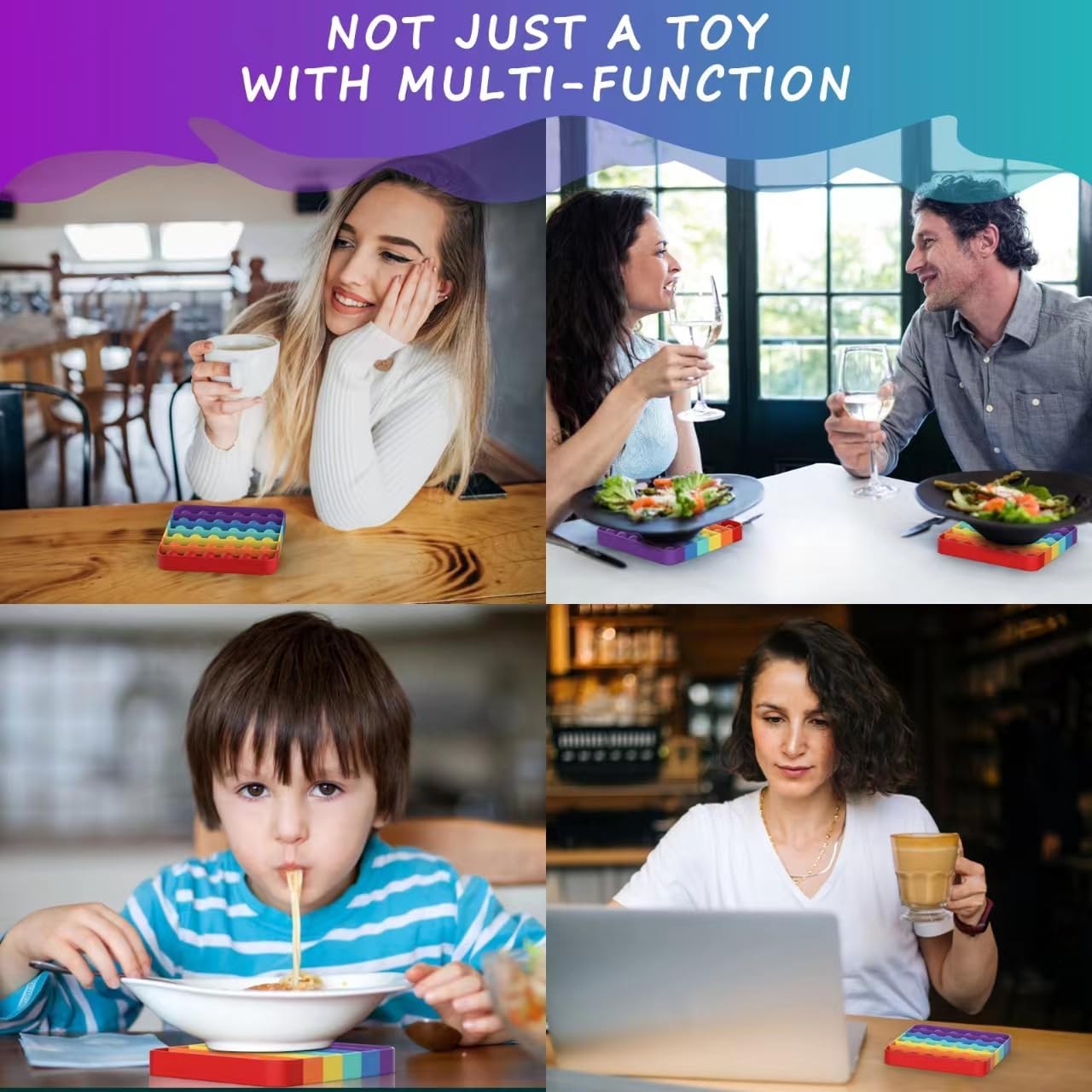 Bdwing Push and Pop Bubble Sensory Fidget Toy, Silikon Sensorisches Angst Relief Finger Toys, Antistress Geschenk für Jungen, Mädchen, Teenager, Gesellschaftsspiele Spielzeug (Rainbow, Square)