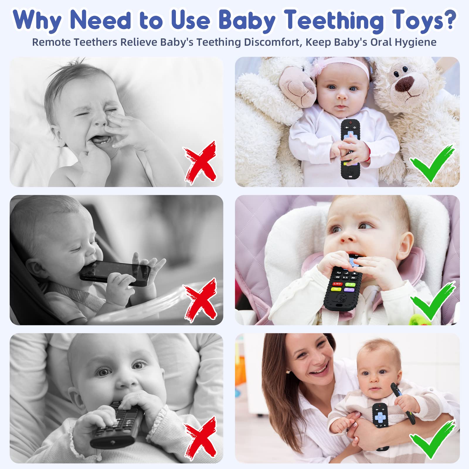 - 【Perfektes 3-6 Monate Baby-Beißspielzeug】 Lassen Sie Ihr Kind seine Zähne in etwas Lustiges und Sicheres versenken! Unsere 3 6 12 Monate alten Beißspielzeuge für Säuglinge sehen aus wie echte Fernbedienungen, komplett mit satten Farben und realistischen Tastendesigns. Sie sind perfekt, um Zahnfleischschmerzen zu lindern, die Hand-Auge-Koordination zu fördern und Ihr Baby stundenlang glücklich und beschäftigt zu halten.